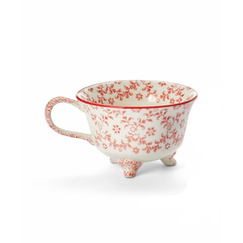 Kassikalise Jaapani ornament-kaunistustega jalgadel kruus.