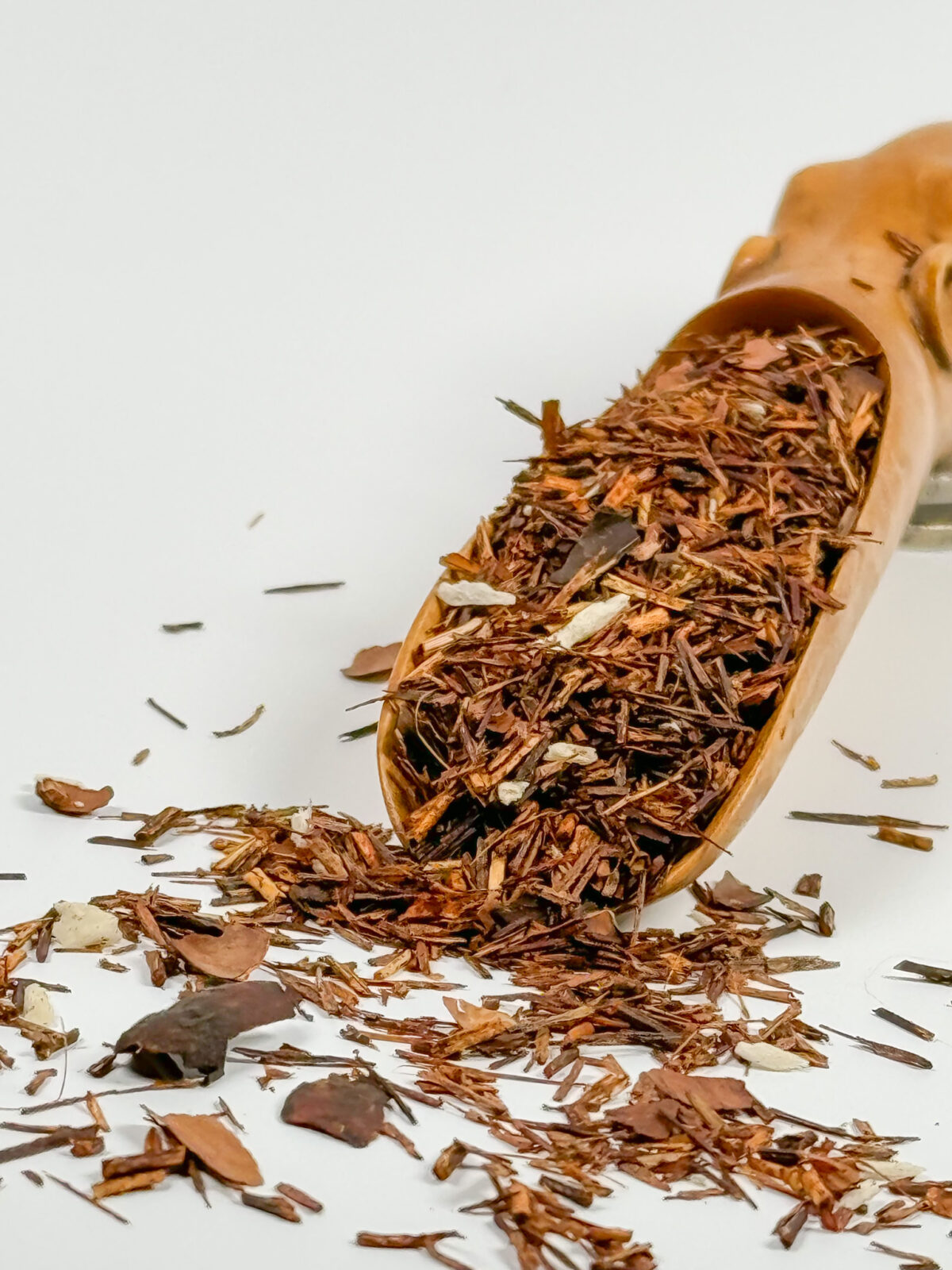 Kofeiinivaba Aafrika rooibos, KAKAOubade kestad, KAKAOnibbsid, kookoshelbed, looduslik lõhna- ja maitseaine. Sobib hästi väikelastele, rasedatele, imetavatele emadele.