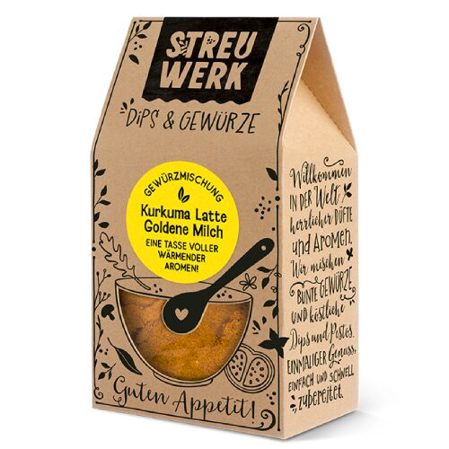 Kuldse piima vürtsisegu mitte ainult ei anna piimale värvi, vaid on ka supertoit. Proovi juua enne magamaminekut – soodustab sügavat ja rahuliku uneund. Valmistamine: kuumuta 250ml piima ja sega teelusikatäie vürtsiseguga. Maitseb suurepäraselt ka taimse piimaga. Lisa ka mett või vahtrasiirupit. Võib sisaldada selleri jälgi.