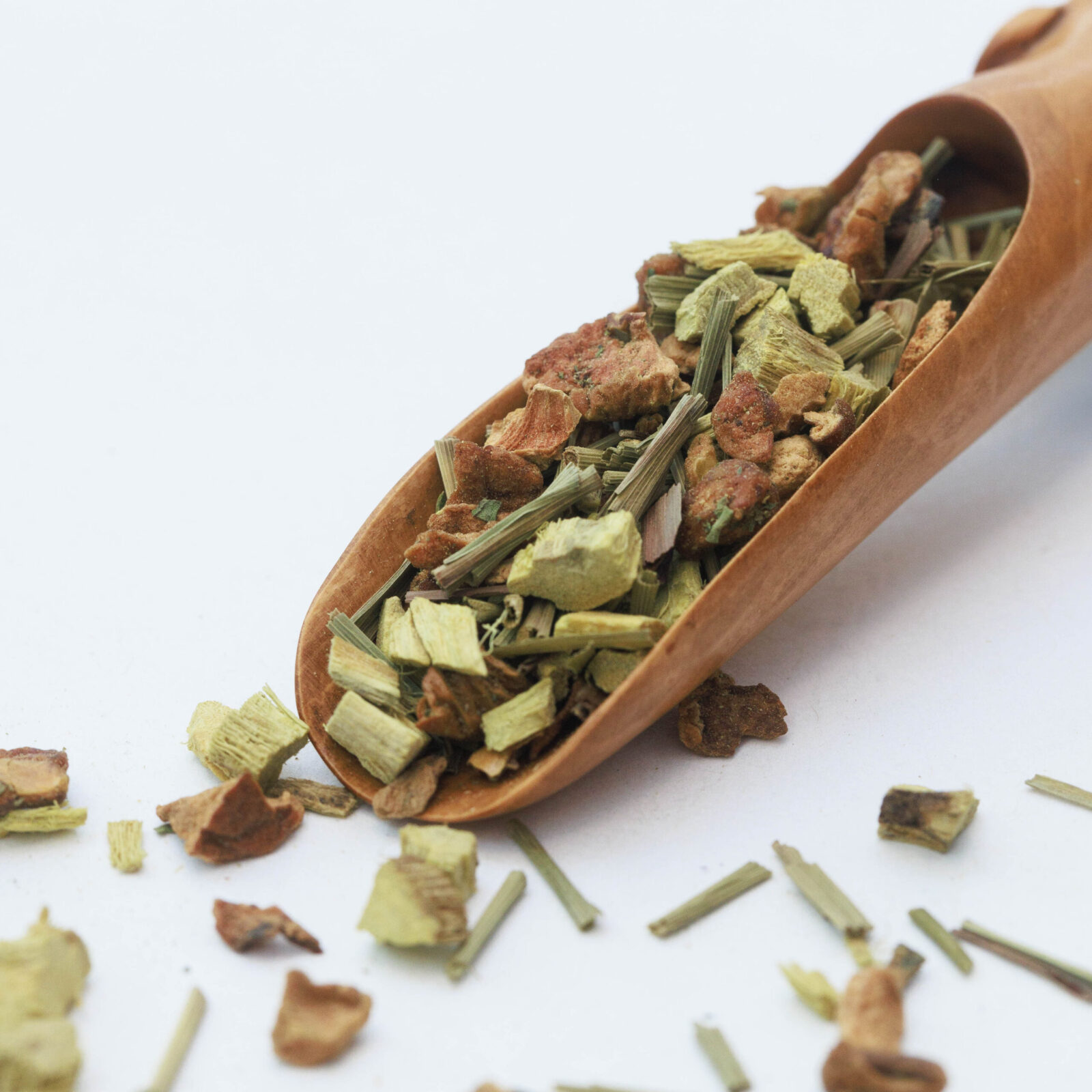 Teesegu milles lagritsa juur, õuna tükikesed, piparmünt, sidrunhein, lõhna- ja maitseaine.