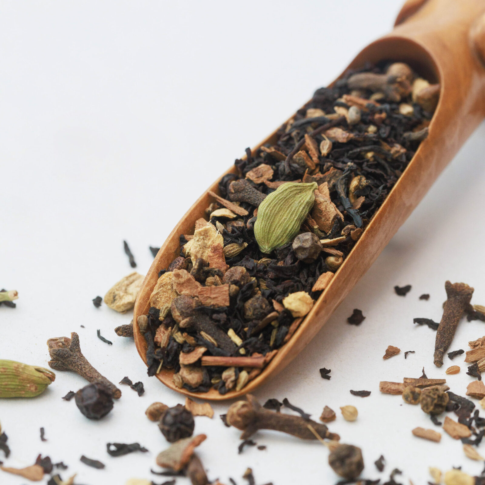 Vürtsikas ja tuline must teesegu milles: kaneelikoored, aniisi seemned, ingverijuur, must pipar, nelk, tükike sigurijuurt, kardemoni seemned ning kuprad.