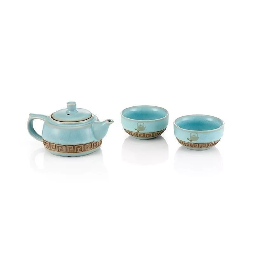 Kannul kompletis: metallist sõelaga 200 ml kann ja kaks 160 ml teetopsikest.