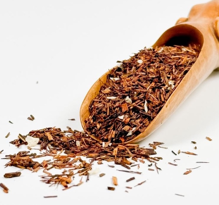 Kofeiinivaba Aafrika rooibos, šokolaadi tükikesed (suhkur, KAKAOvõi, KAKAOoad, SOJAletsitiin), kookoslaastud, looduslik lõhna- ja maitseaine. Sobib hästi väikelastele, rasedatele, imetavatele emadele.