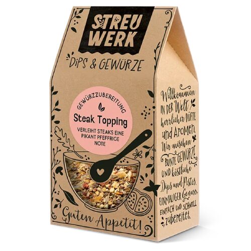 Koostises: must pipar, sibul, paprika, tomati helbed, sool, basiilik, küüslauk, tüümian, roosuhkur, pimento pipar.